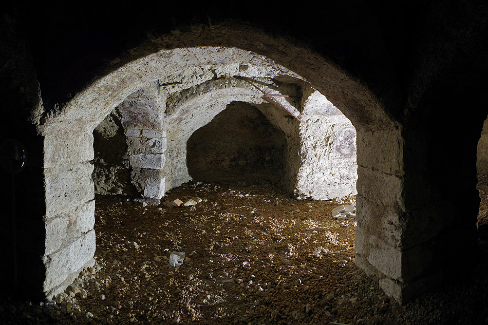#4 Cave formée par la séparation en deux niveaux, d'une grande salle du 13e sècle (gréneterie de Bourgmoyen).